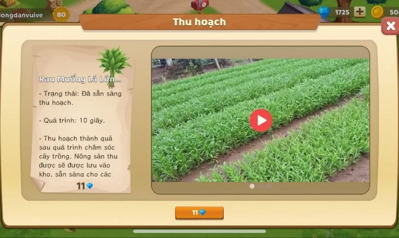 Khi cây đạt đủ độ chín và xuất hiện rõ trên camera, hệ thống sẽ thông báo để người chơi tiến hành thu hoạch. Bạn chỉ cần xác nhận thao tác thu hoạch trên ứng dụng, và đội ngũ nông trại sẽ thực hiện thu hoạch thật.